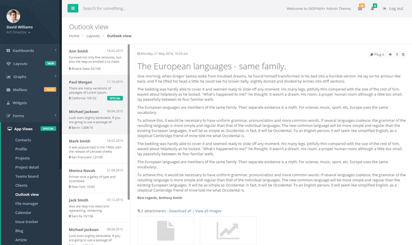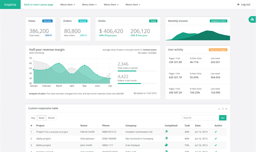 INSPINIA - Responsive Admin Theme is provided with two main layouts